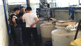 • 某五金加工廠清洗廢水破乳劑調(diào)試現(xiàn)場(chǎng)